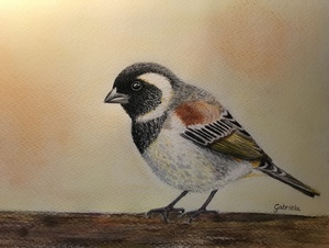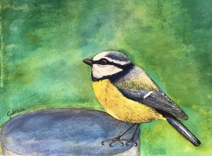 2020pimpelmeesje getekend met kleurpotlood en ecoline op aquarelpapier