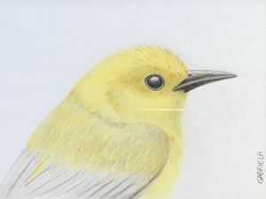 2020Kleurpotlood tekening van een gele zanger.