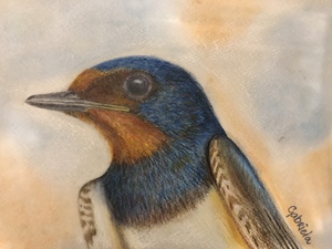 2020Potlood tekening van een boeren zwaluw op aquarelpapier.
