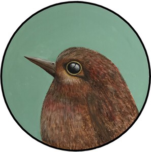 2020Kleurpotloodtekening en ecoline op aquarelpapier van een roodborstje en koolmeesje.